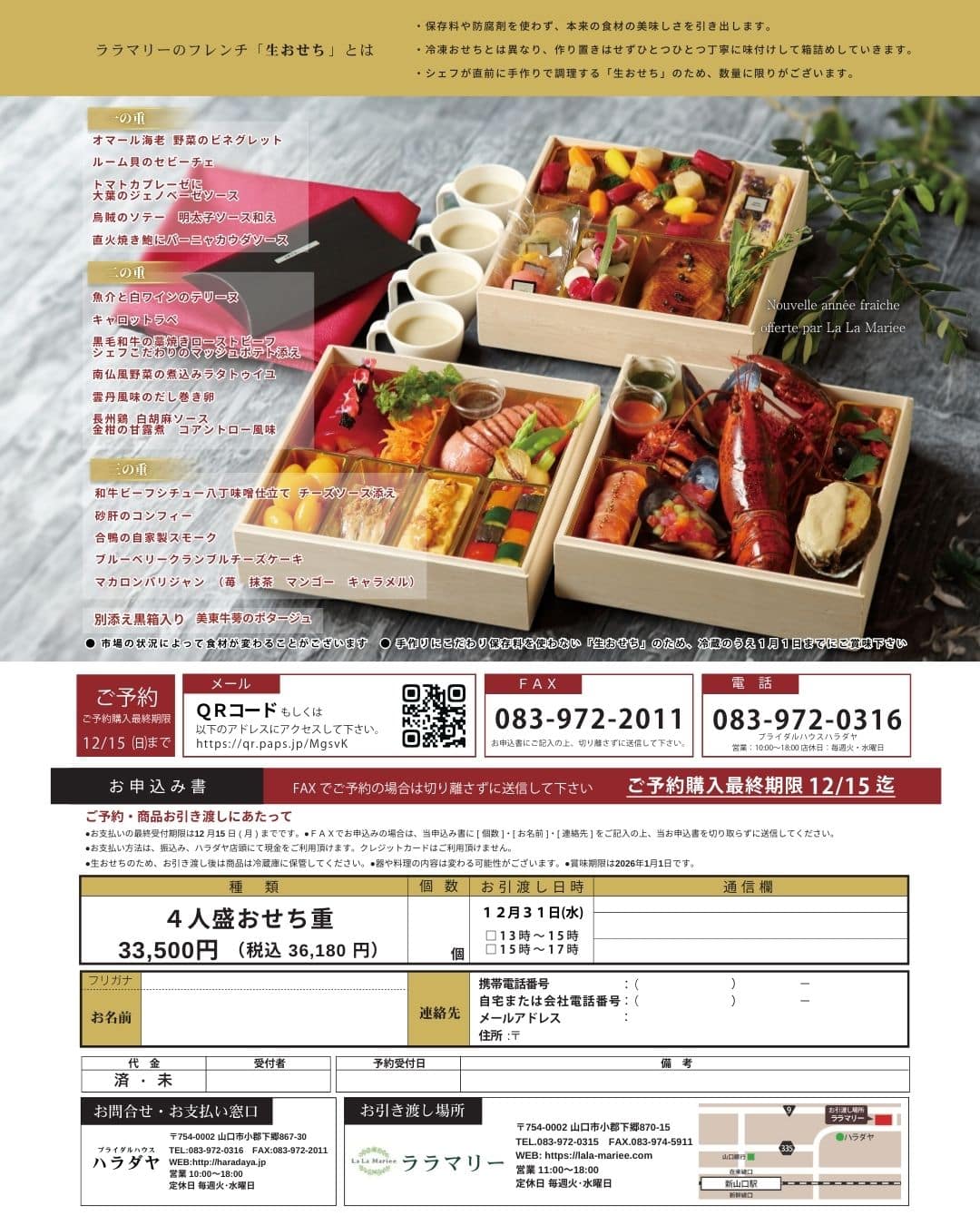 山口結婚式場ララマリー特製「フレンチ生おせち」2026|数量限定ご予約受付中